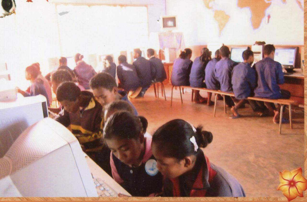 2014 Les élèves suivent un cours informatique AMBATOMANJAKA